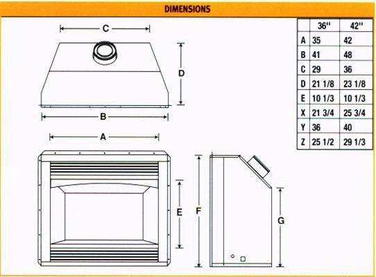 | 42" Millivolt 25-36,000 BTU Input Direct Vent Fireplace With Refractory Brick Liner |